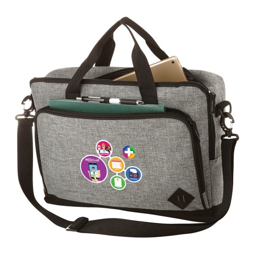 The Graphite 15" Computer Briefcase is made from 600D PolyCanvas and features a spacious, easy-to-access top opening with a padded 15" laptop compartment. It also contains a front pocket with a built-in organizational pocket to provide extra storage. With top grab-handles and a removable, adjustable shoulder strap, this durable laptop briefcase is easy to wear or carry anywhere. Due to the nature of the fabric dyes, weaves, and printing, there may be minor color variations in each item.