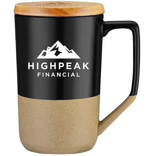 - 15 oz two-tone tea and coffee ceramic mug with wood lid